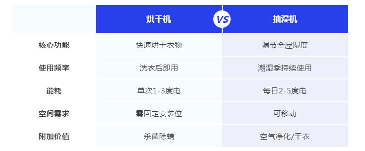 但还没入手的家人们就要纠结了,烘干机、抽湿机听上去功能好像都差不多,那么我家到底应该选哪个呢?