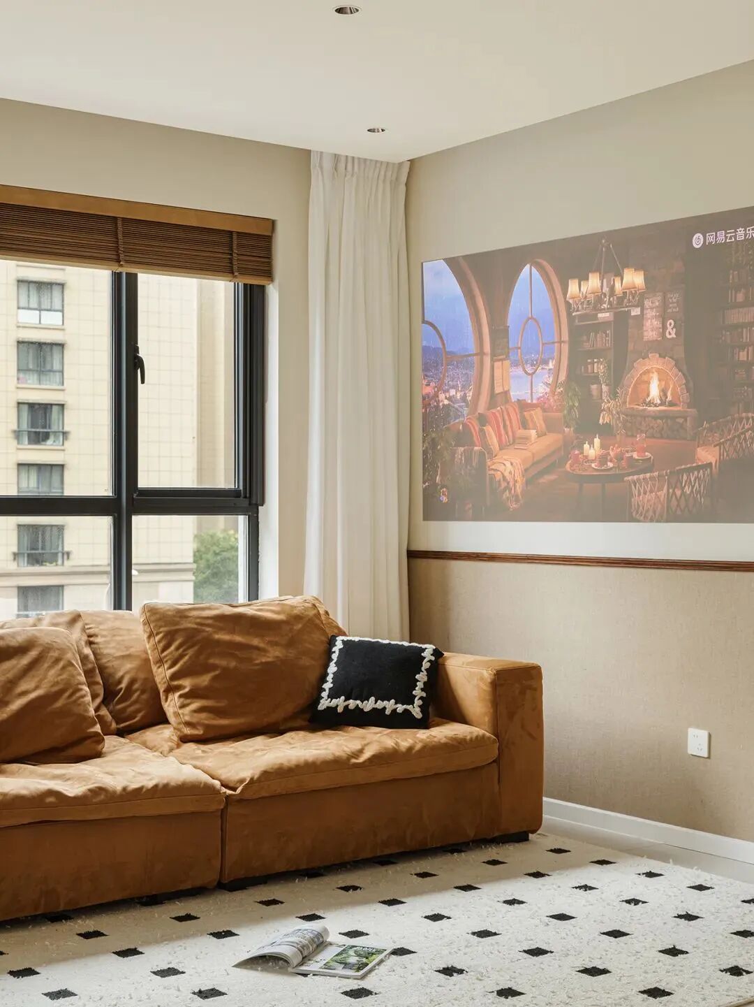 窗帘:最好选择双层窗帘,一层纱帘制造氛围感,一层遮光帘遮光隔音保温,遮光帘可以选择涤纶、棉麻或丝绒材质,遮光隔音效果好。