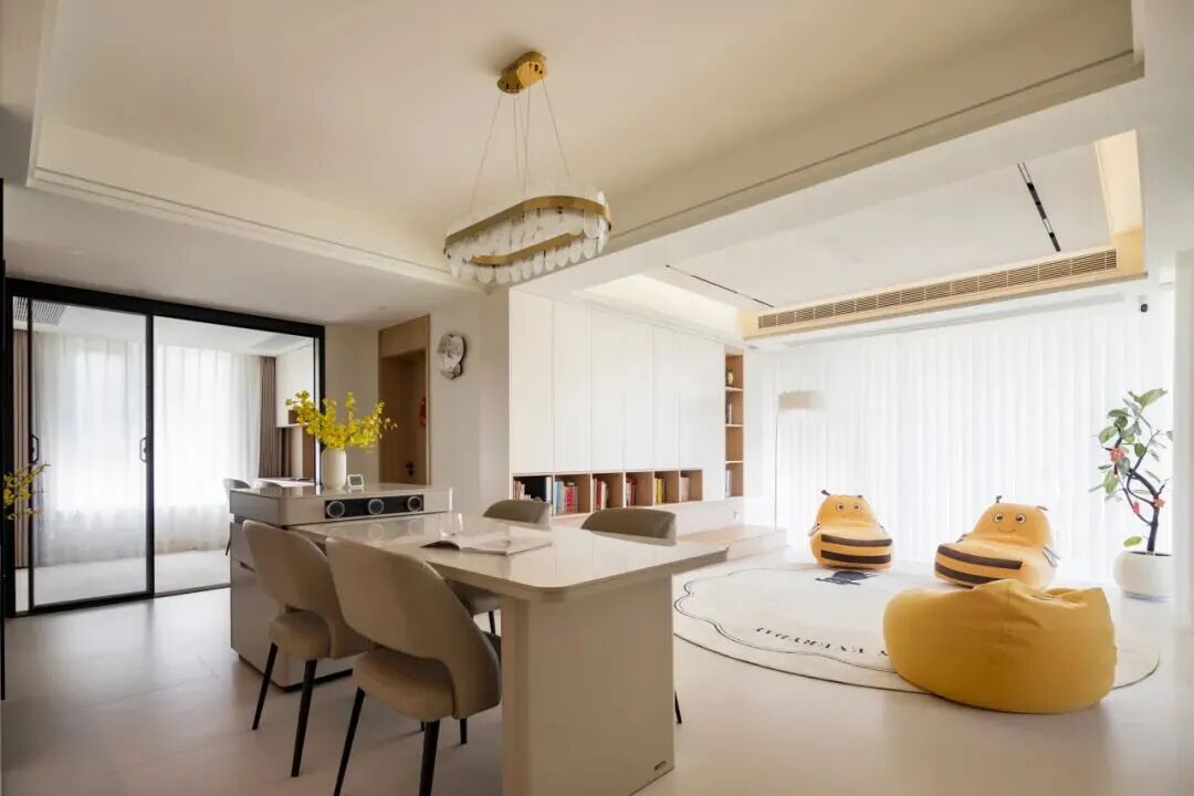 如果自然光不够,可以适当增加室内灯光,建议舍弃笨重的大吊灯,选择无主灯设计,让光线更均匀。